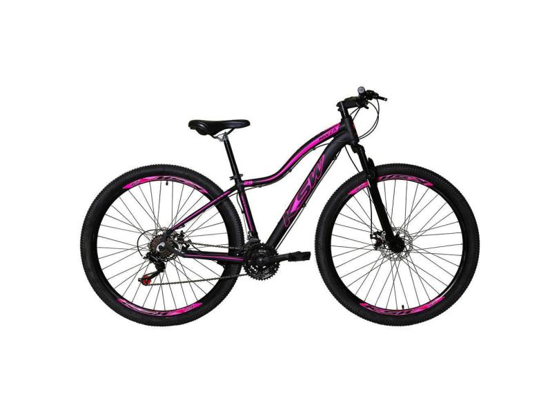 Bicicleta Feminina Aro 29 Ksw Mwza Alumínio 24v Câmbios Shimano Garfo Suspensão - Preto/Rosa