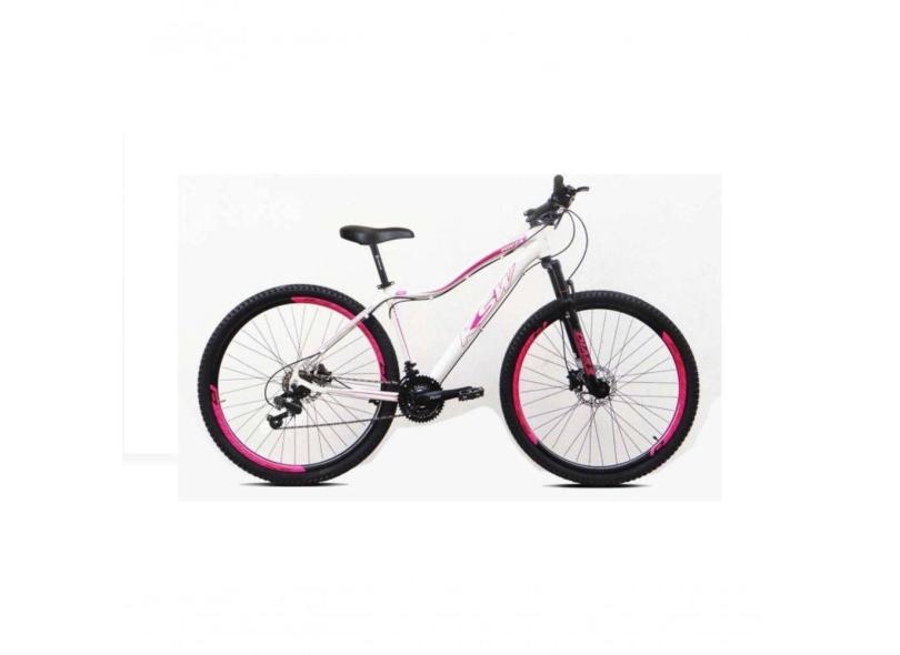 Bicicleta Feminina Aro 29 Ksw Mwza Alumínio 27v K7 Freio Disco Mecânico - Branco-rosa Tam.15