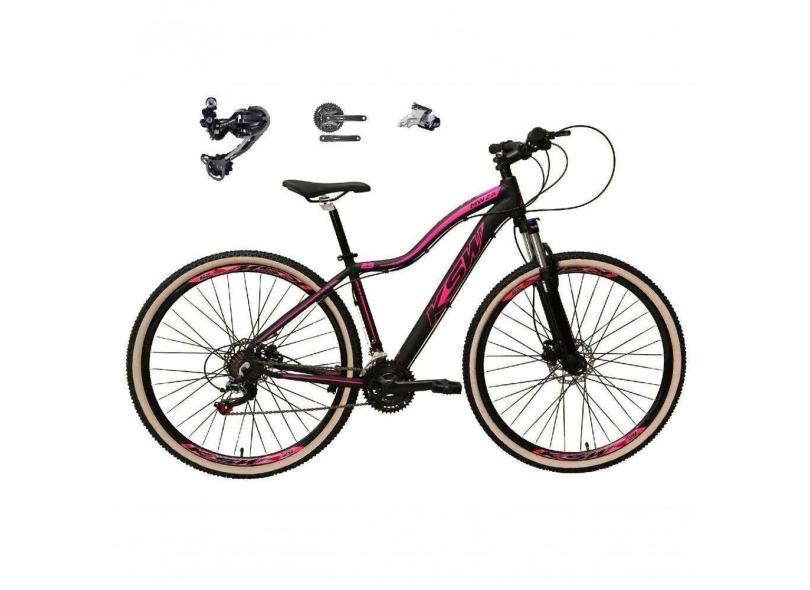 Bicicleta Feminina Aro 29 Ksw Mwza Câmbio Deore E Altus 27v Hidráulico Garfo Trava Pneu Faixa Bege - Preto/rosa Tam.15
