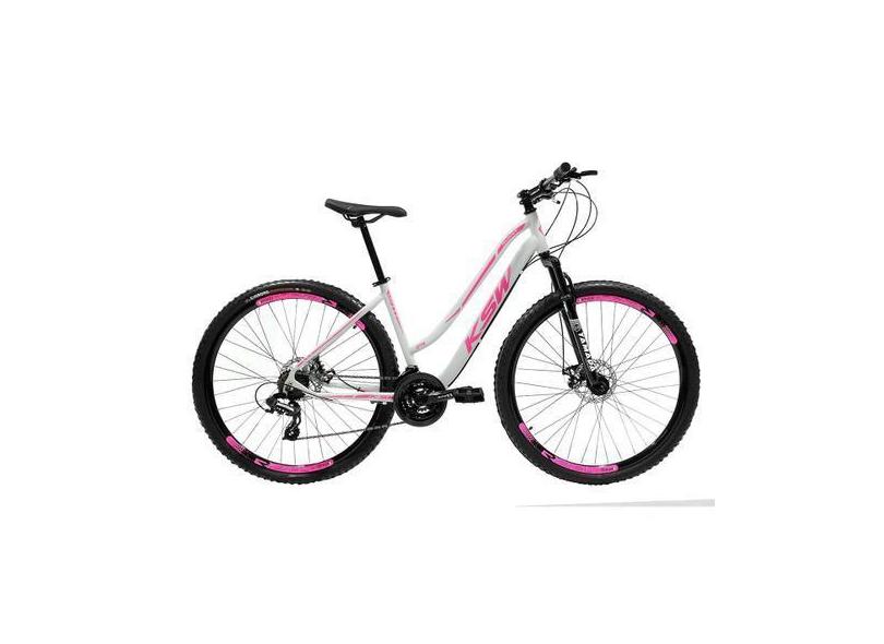 Bicicleta Feminina Rebaixada Aro 29 KSW 21 Marcha Freio Disco, Branco,