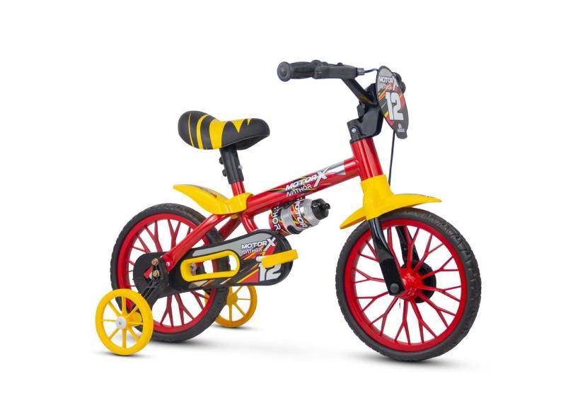 Bicicleta Infantil Aro 12 Meninos Motor X Rodinhas De Treinamentos Cestinho Nathor