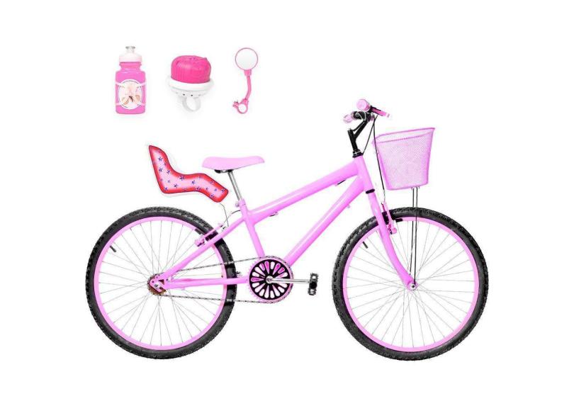 Bicicleta Infantil Aro 24 Alumínio E Cadeirinha Rosa