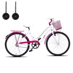 Bicicleta Infantil Aro 24 Com Cestinha e Rodinhas-Feminino