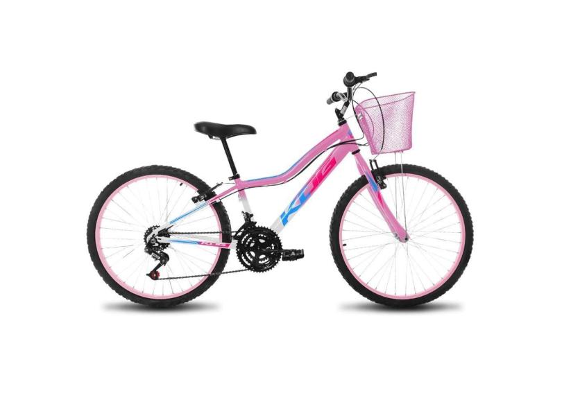 Bicicleta Infantil Aro 24 Feminina KOG Quadro Alumínio 18V Com Cestinha para Meninas Branco Degrade Rosa