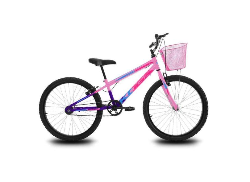 Bicicleta Infantil Aro 24 KOG Feminina com Cestinha Cor Violeta Degrade Rosa