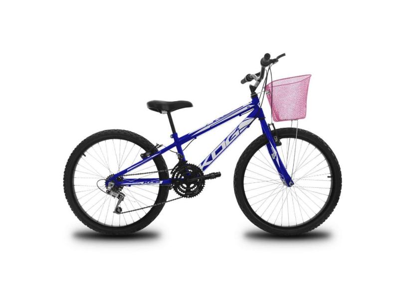 Bicicleta Infantil Aro 24 para Menina 18 Velocidades KOG Azul Signos Branco