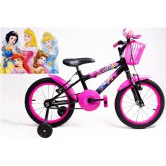 Bicicleta Infantil Feminina Aro 16 - Preto E Pink- Personagem - Olk Bi