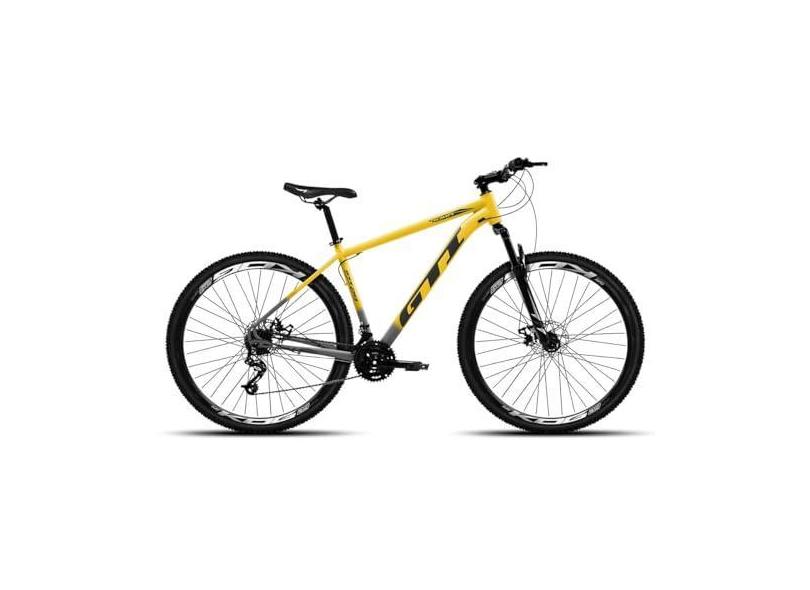 Bicicleta MTB Aro 29 GTI Roma 27v Freios Hidráulicos e Suspensão com Trava,Preto Degradê Amarelo