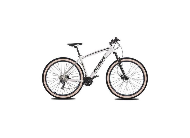 Bicicleta MTB Aro 29 KSW 27V Freio Hidráulico Cubo K7 Trava, Branco, P
