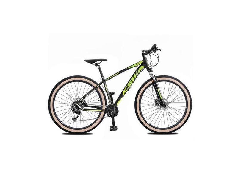 Bicicleta MTB Aro 29 KSW 27V Freio Hidráulico Cubo K7 Trava, Preto, Ve