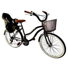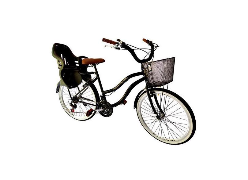 Bicicleta Retrô Aro 26 Cadeirinha Infantil 18 Marchas Preto - Maria Cl