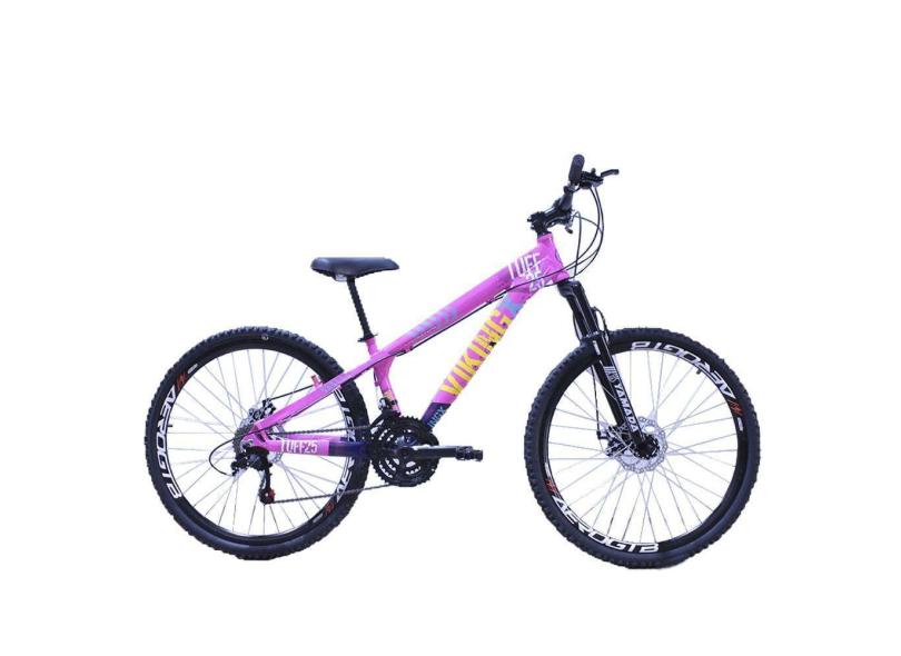 Bicicleta Viking TUFF25 Aro 26 Aero 26 disco Freio Disc 21V Cambios Shimano Rosa Neon Azul Marinho