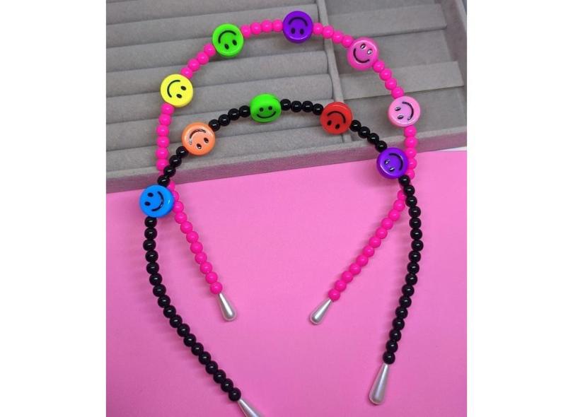 Arquinho Tiara Smile para Crianças Adulto e Infantil miçangas Coloridas Fimo Bolinhas Pérolas Preto Rosa