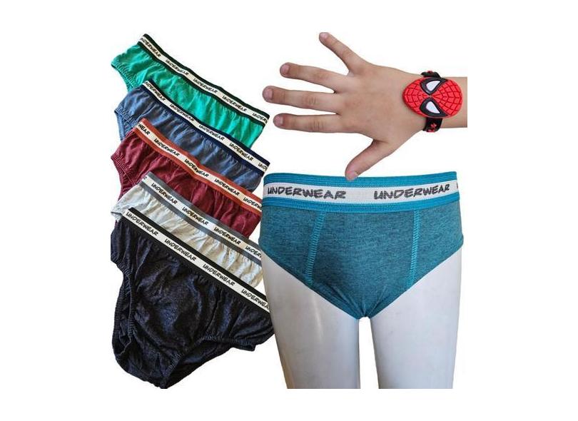Cueca Infantil Algodão Kit c/10 Slip + Pulseira Criança Menino - MATU