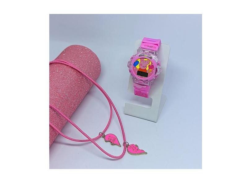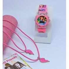 Kit Relógio Infantil Digital Pisca Luz Toca Musica + Colar de Amizade