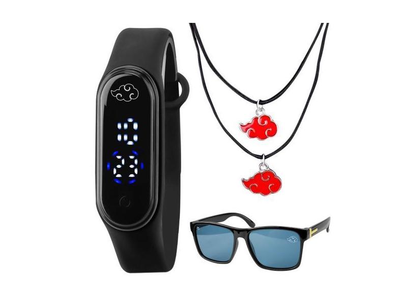Oculos + relogio digital prova dagua infantil + colar naruto presente