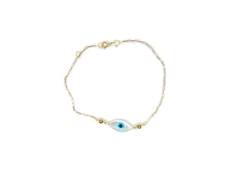 Pulseira Com Pingente De Ouro 18K Olho Grego 13cm Infantil - Elegancy