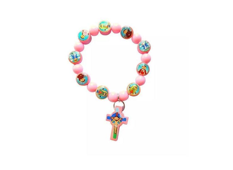 Pulseira Infantil Terço Catequese Religioso Em Plástico Abs 16cm - Rik