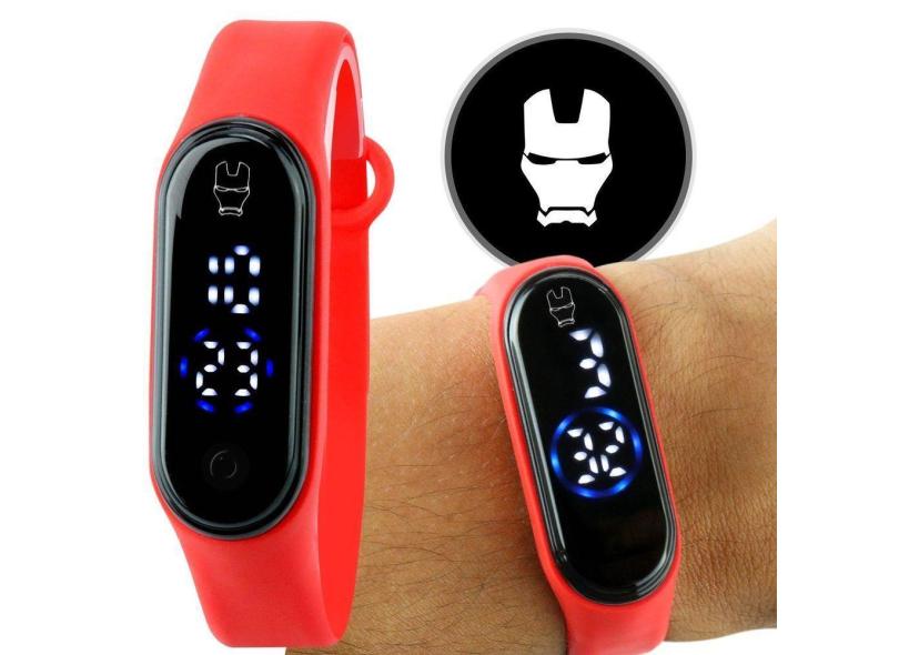 Relogio Digital Infantil Homem Ferro + Bracelete Prova Dagua Criança Vermelho Heroi Presente Menino