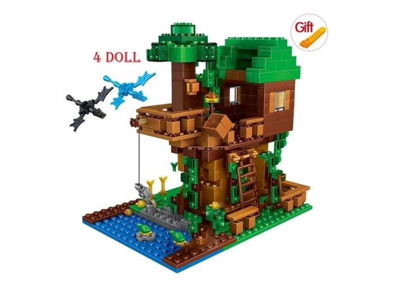 Bloco Montar Minecraft Encomenda 250 Peças Casa Árvore