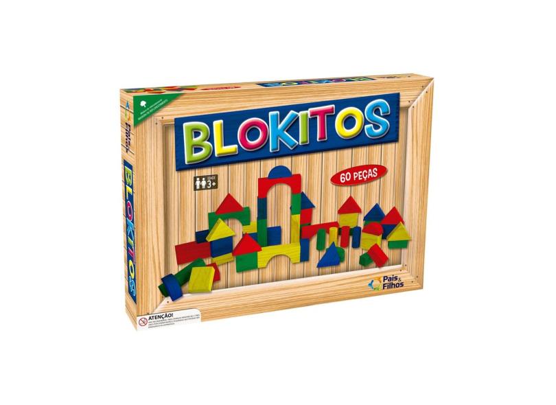 Blocos De Montar Blokitos 60 Peças Madeira Pais E Filhos