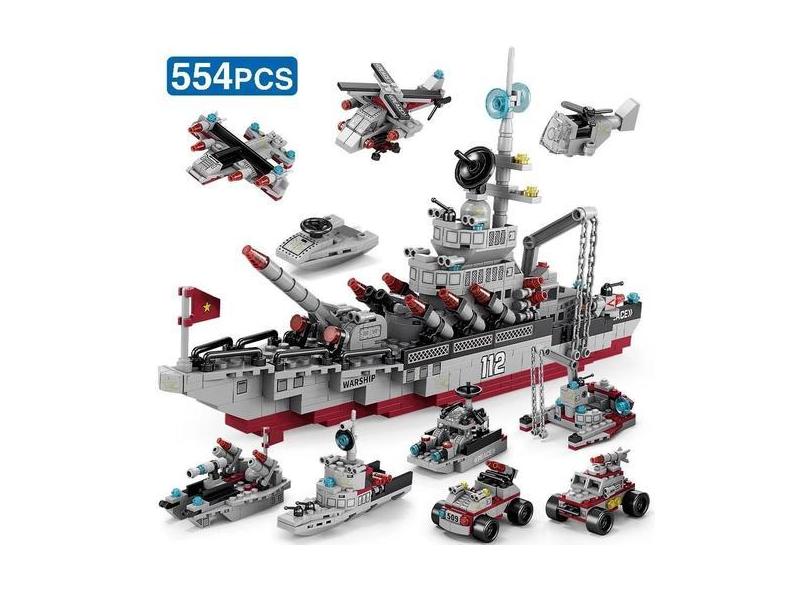 Blocos Montar Combate Guerra 554 Peças Mega Navio + 24 - Lele Brother