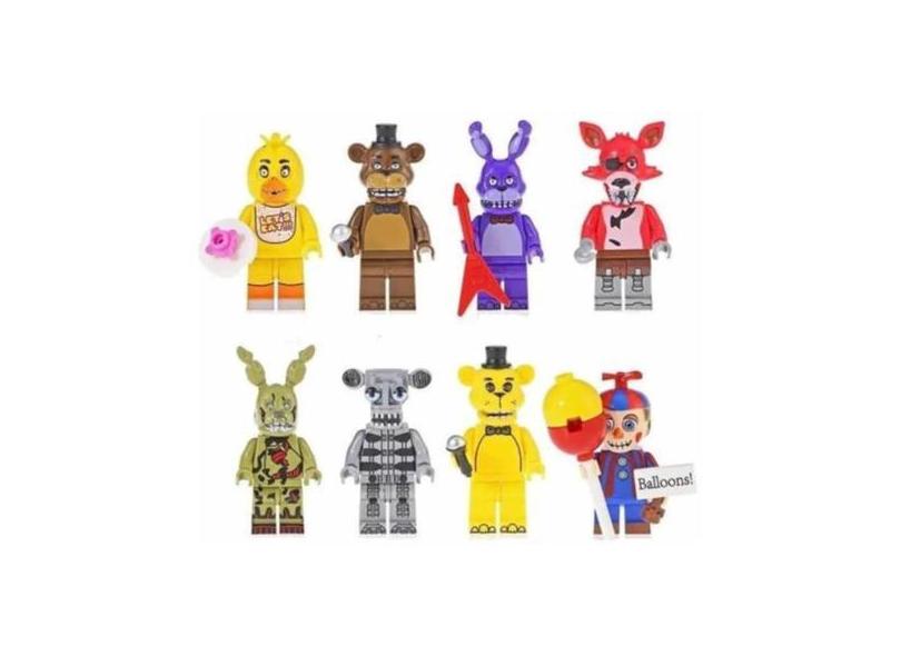 Bonecos Blocos Montar Golden Toy Freddy Chica Bonnie Foxy - Mega Block