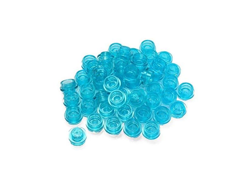 LEGO Peças: 100 placas azuis transparentes redondas 1x1
