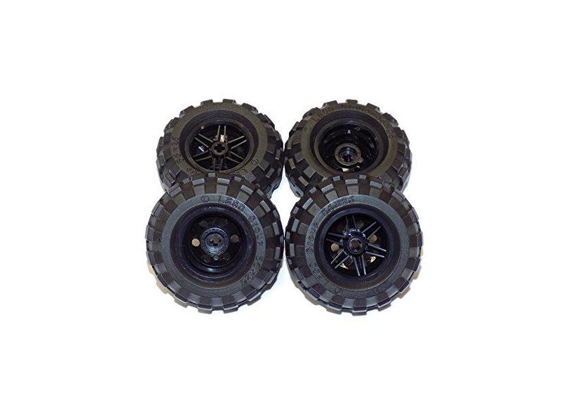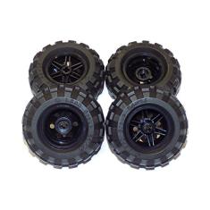 LEGO Peças e peças: Pacote de pneu preto grande e roda preta - 8 peças
