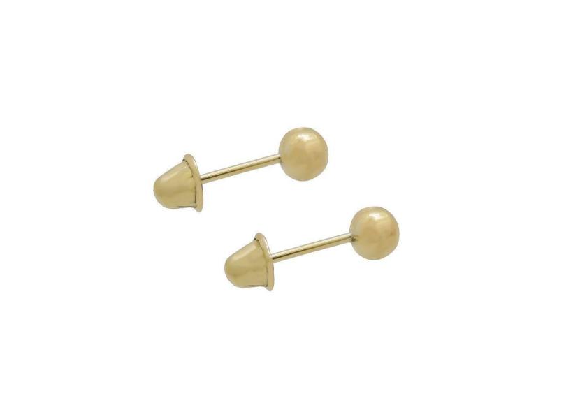 Brinco Infantil recém-nascido bola 3mm bolinha ouro 18k bebê