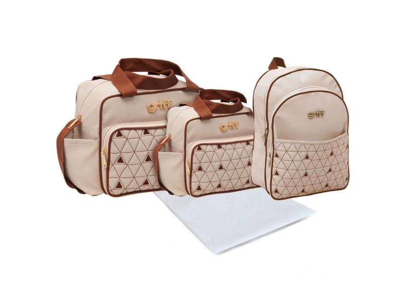 Kit Bolsa Bebê Maternidade Bege Mochila Trocador CA215MT