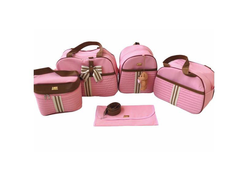 Kit Bolsa Maternidade 5 Peças Completo Courino Frasqueira Laço com Saída Maternidade 5 Peças de Menina Bebê