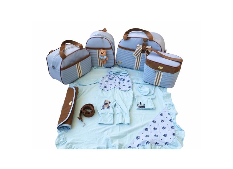 Kit Bolsa Maternidade 5 Peças Completo Courino Frasqueira Laço Saída Maternidade 5 Peças