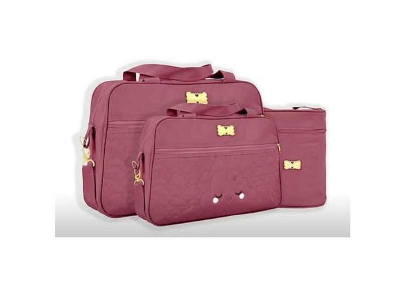 Kit Bolsa Maternidade Menina Vinho Nuvem Chuva De Benção