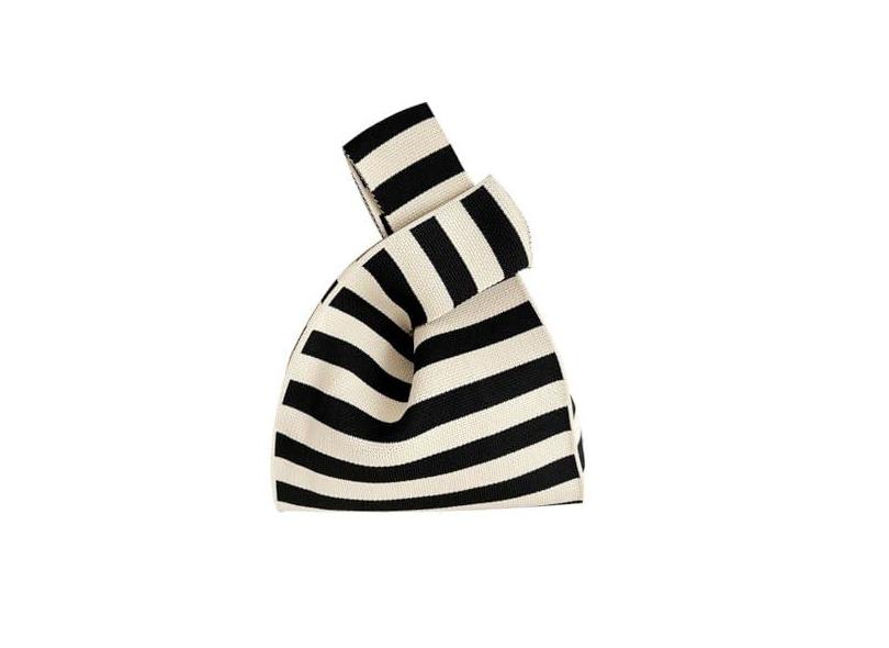 Aaspad Bolsa de mão de malha para mulheres, bolsa de mão, bolsa de mão para celular, bolsa clutch de bolso, alça de crochê, pequena, Barra branca + preta
