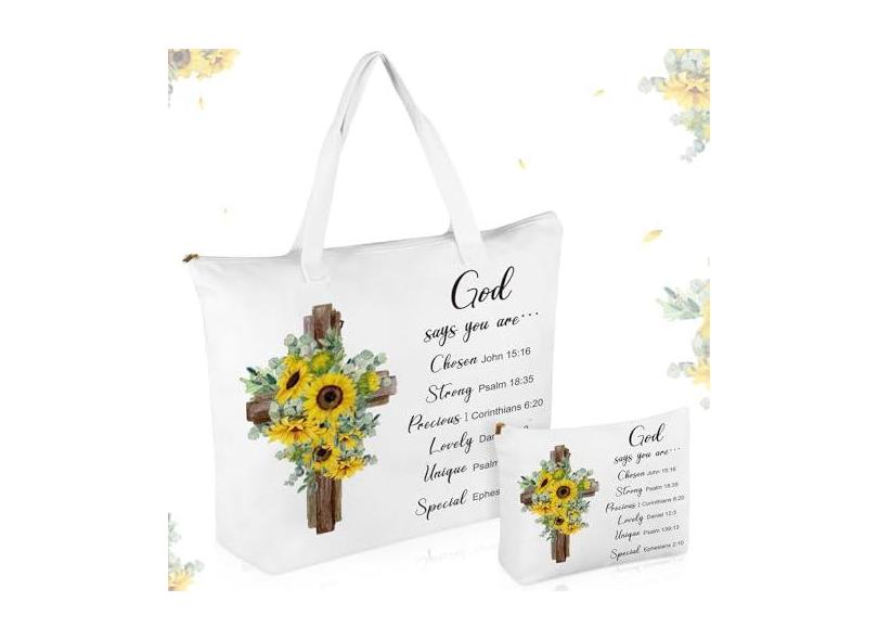 Abbylike 2 peças de sacola de lona de girassol cristã com bolsa de maquiagem, versículo bíblico, bolsa religiosa, conjunto de bolsa religiosa para presente de Natal, Como mostrado nas imagens., One