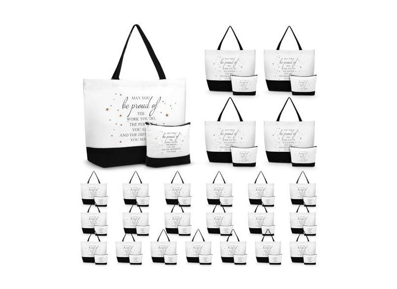 Abbylike 48 peças de bolsa de presente de agradecimento de funcionários a granel 24 sacolas de agradecimento 24 bolsas de cosméticos de lona para professora enfermeira senhora, Como na imagem., One