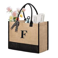 BeeGreen Sacola de juta com inicial para mulheres, bolsa de praia com alças, presente de agradecimento para amigos, madrinha de honra, mãe, bolsa de presente com monograma personalizado para