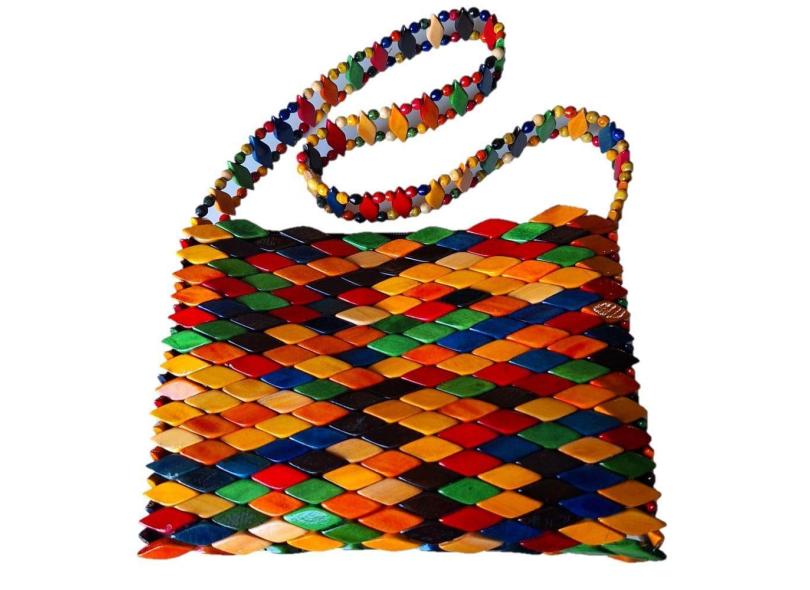 Bolsa Artesanal Madeira Envernizada Colorida Retangula Ombro