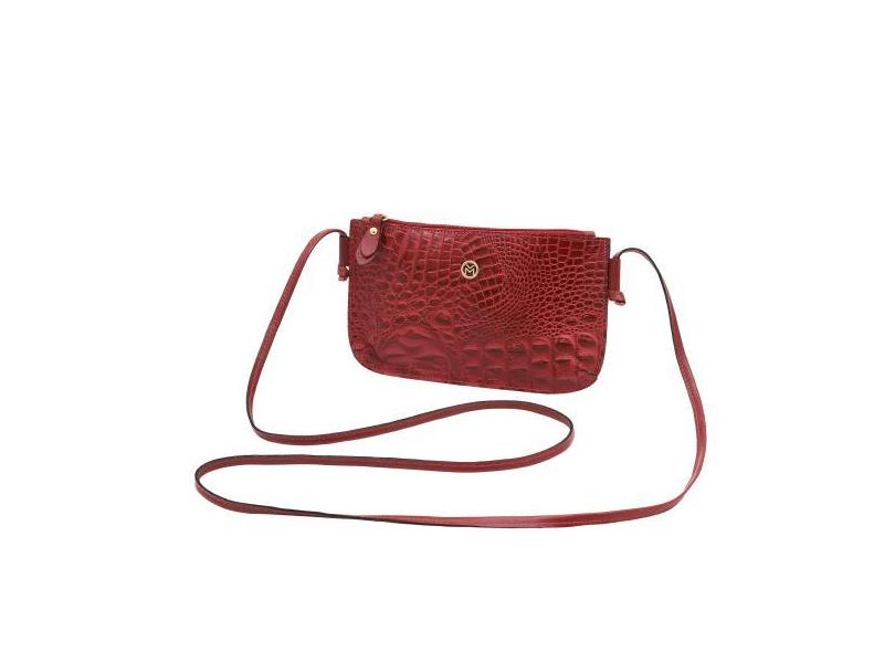 Bolsa De Couro Legítimo Feminina Com Zíper Croco Mariart 202