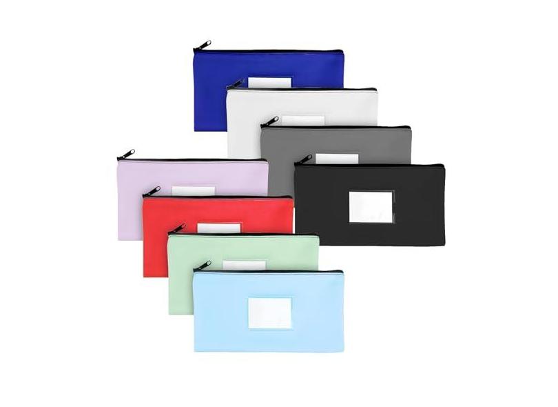Bolsa de dinheiro com zíper, sacos de dinheiro de 28 x 15 cm com zíper com etiqueta transparente para janela, 8 cores, bolsa de dinheiro com depósito bancário pode guardar dinheiro, moedas, faturas,