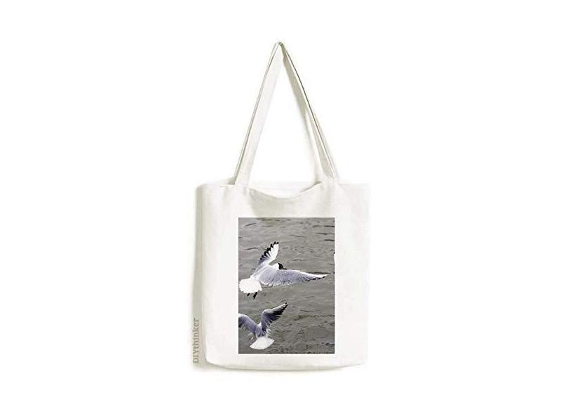 Bolsa de lona com imagem de natureza e pássaro oceano água mar bolsa de compras casual bolsa de mão