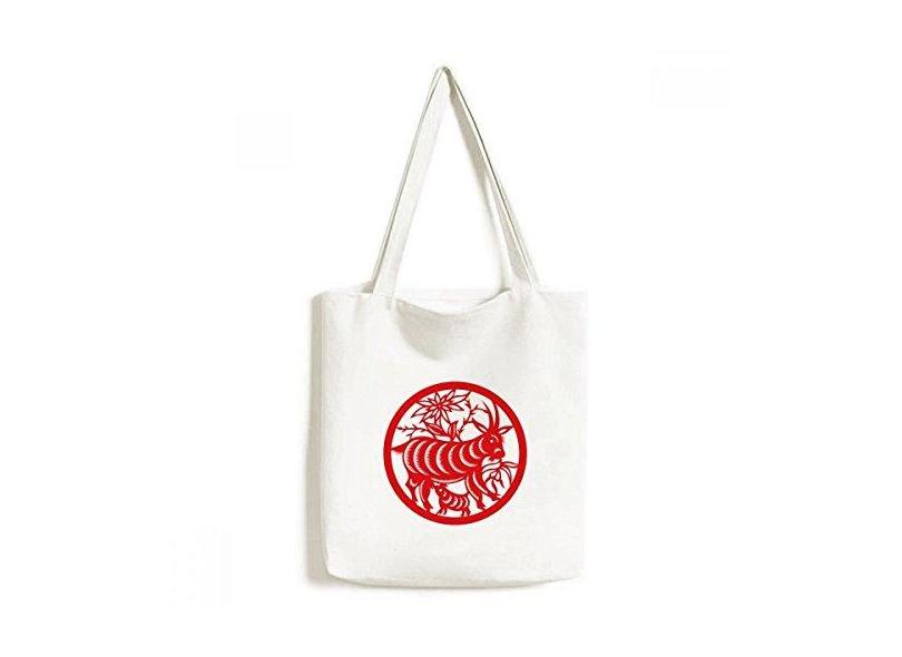 Bolsa de lona de arte do zodíaco chinês, corte de papel, bolsa de compras, bolsa casual