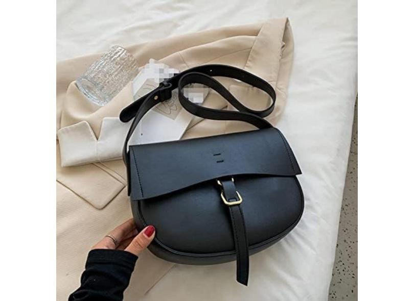 Bolsa de ombro de sela Bolsas crossbody de couro PU para mulheres Bolsas clássicas, pretas