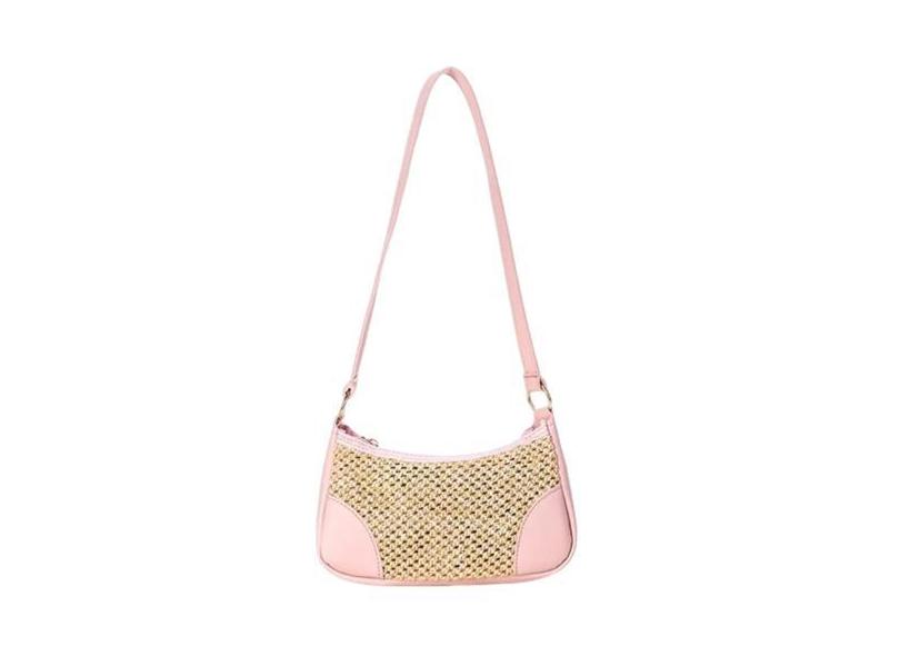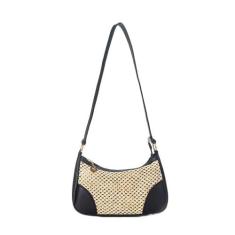 Bolsa de palha e couro pu retangular pequena feminina zíper - Modas Fa