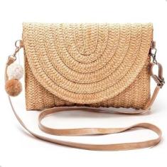 Bolsa de Palha Pequena Acessório De Verão Praia Piscina Alça Transversal-Feminino