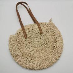 Bolsa De Palha Redonda Vintage Feita À Mão Grande Praia - Tem Tudo OnL