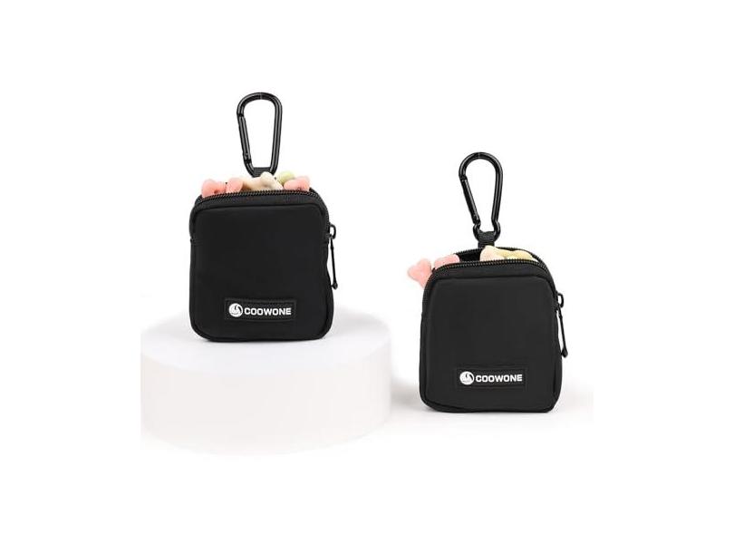 Bolsa de petisco para cães, 2 peças, bolsa impermeável para cães pequenos, para passear com mosquetão, bolsa para cães com mosquetão, suporte para cães em viagens ou uso ao ar livre, fecho de zíper