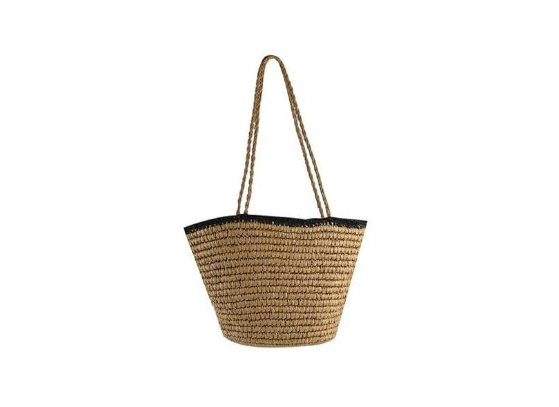 Bolsa de praia de palha tecida à mão para mulheres, casual, vintage, de vime, bolsa de ombro, bolsa de ombro com cesta de tecido, bolsa de férias, Marrom