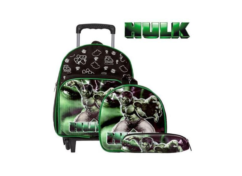 Bolsa de Rodinhas Pre Escola Herói Hulk Reforçada 3 Peças - TOYS 2U